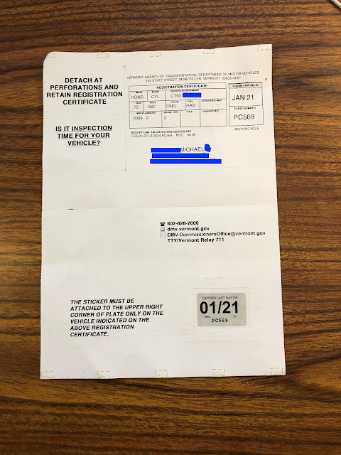 I hope this post was helpful in showing you what is involved with registering a small motorcycle in the state of Vermont.