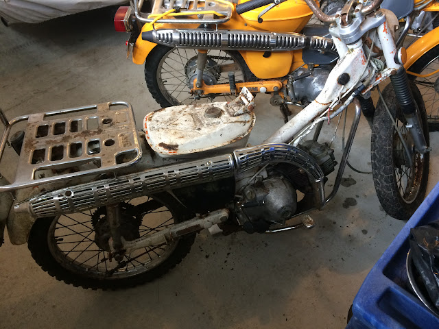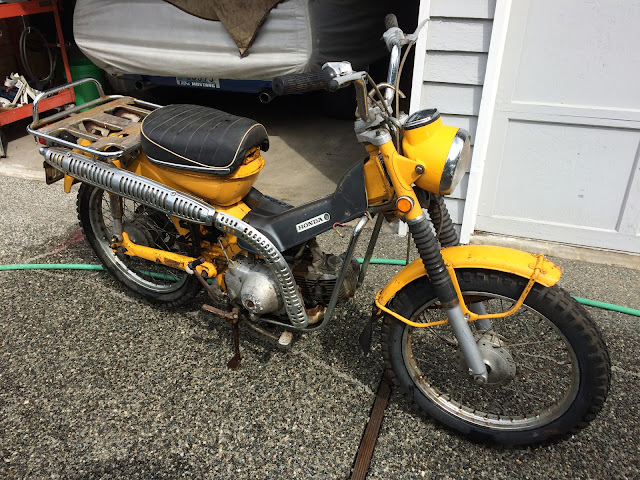 I have a bad habit of looking at Craigslist on a regular basis and this week I was able to pick up the 1971 CT90 in the picture below for $75.00. It's missing the exhaust, but otherwise is complete. It didn't have a title when I picked it up, but the owner thinks he has it and if he finds it he will send it to me which would makes this deal all that much better.