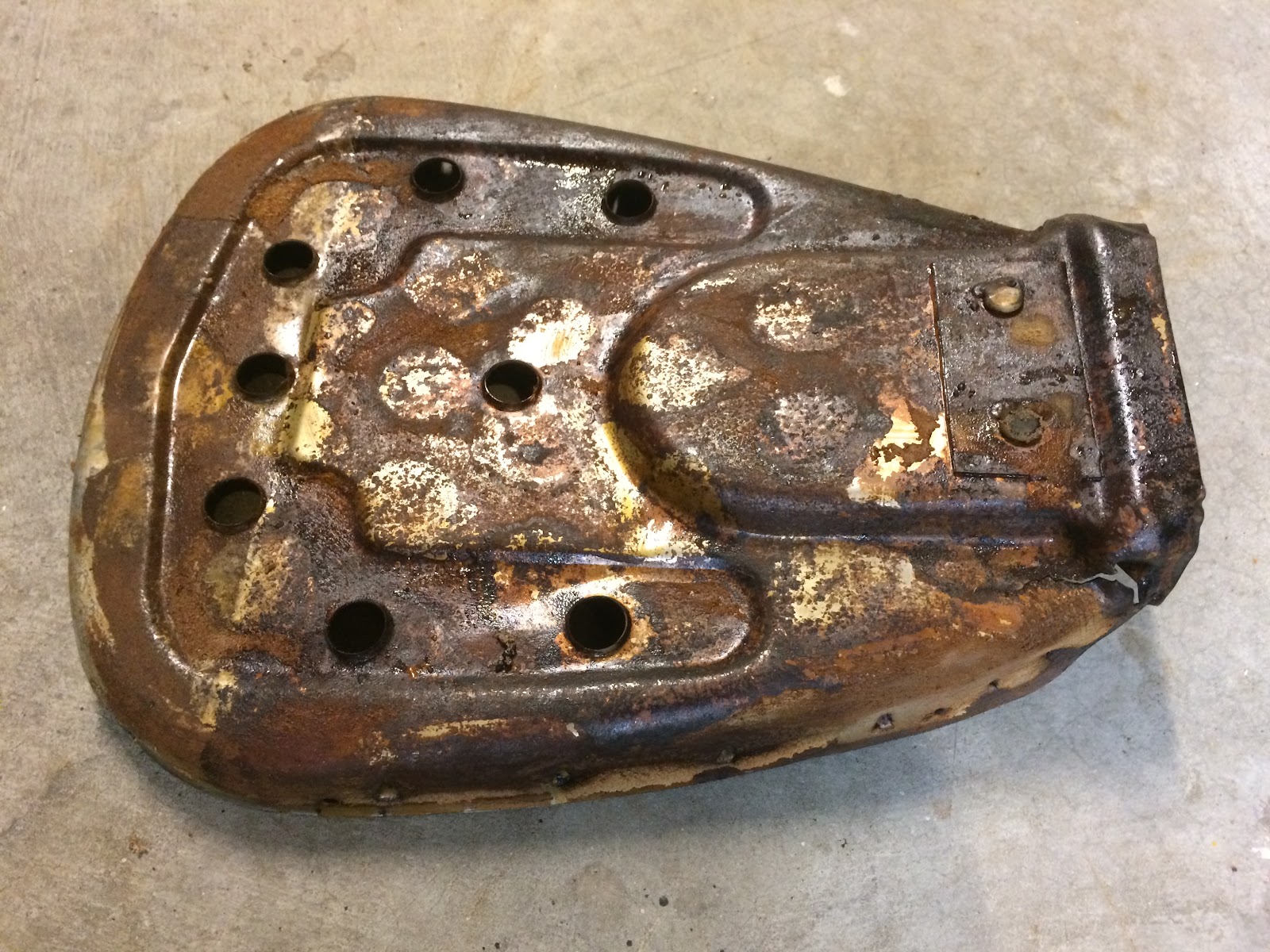Here is a picture of the seat pan after it has gone through the process and had been rinsed off with a coat of oil applied.