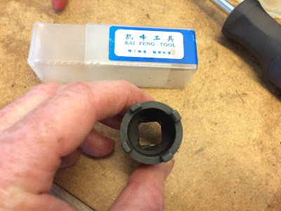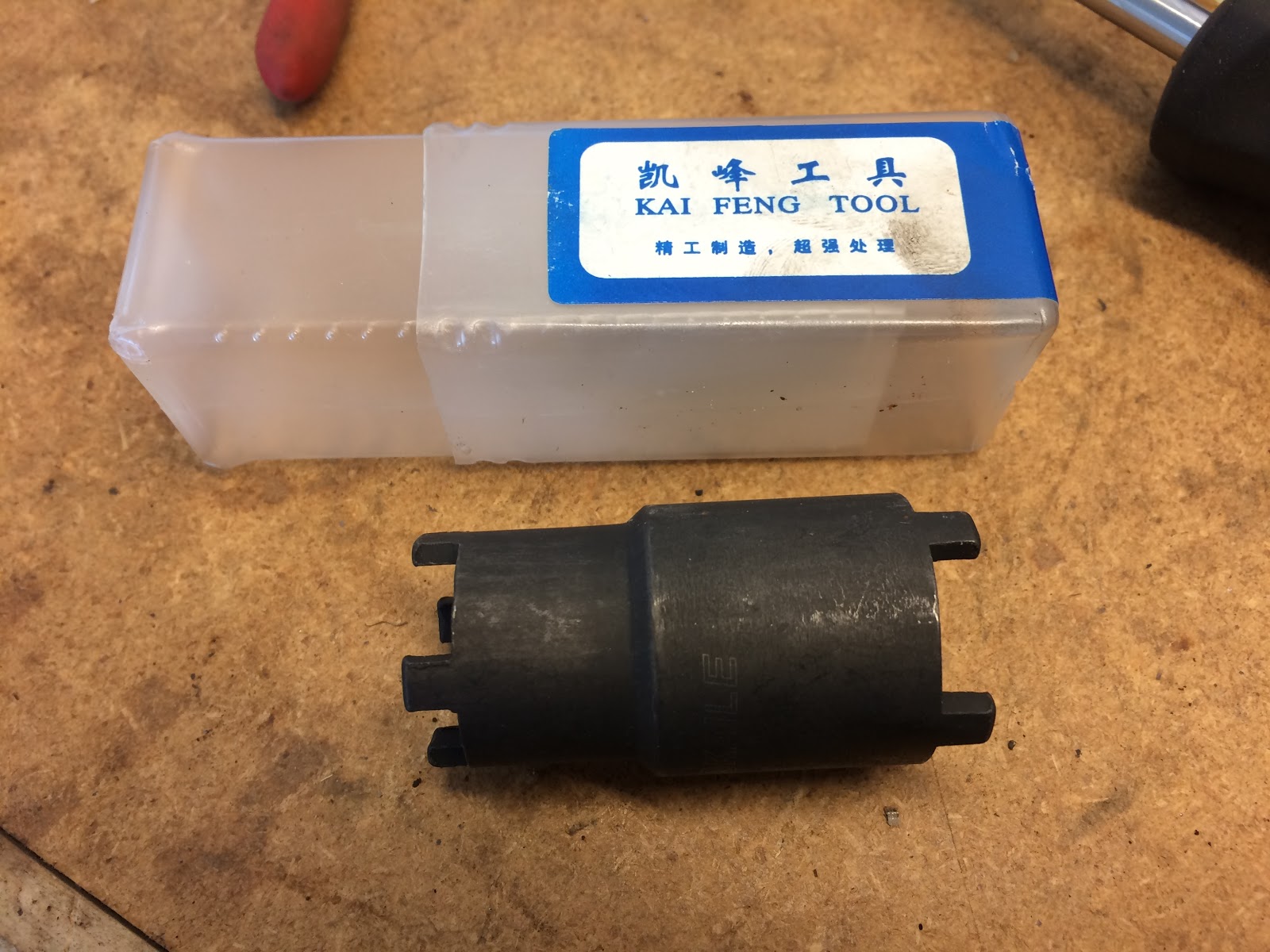 I bought a spanner tool off of eBay to loosen the nut that holds the clutch pack on the motor and the tool worked fine and was actually pretty cheap at $6.55. I included a couple of pictures of the tool below and a key point to note is that the center of the tool accepts standard 1/2 drive tools.