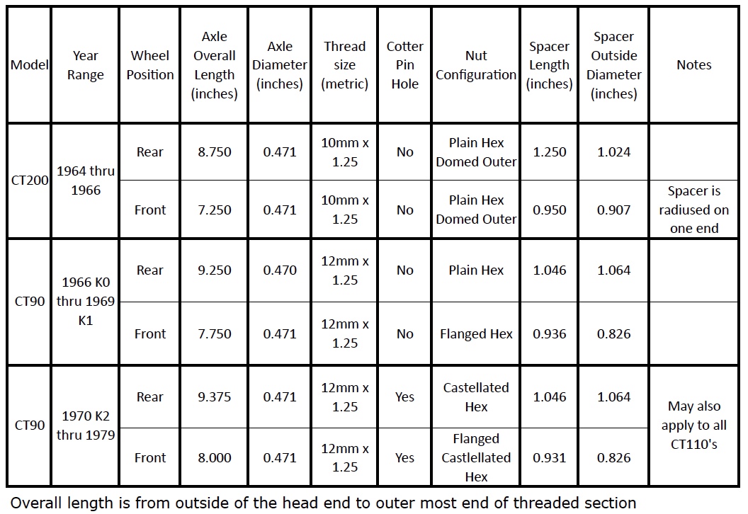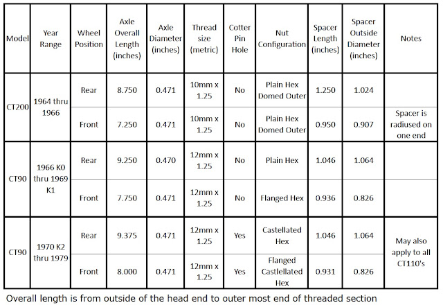 I hope this info is helpful to others searching for the correct axle hardware for their current or future CT90 project!