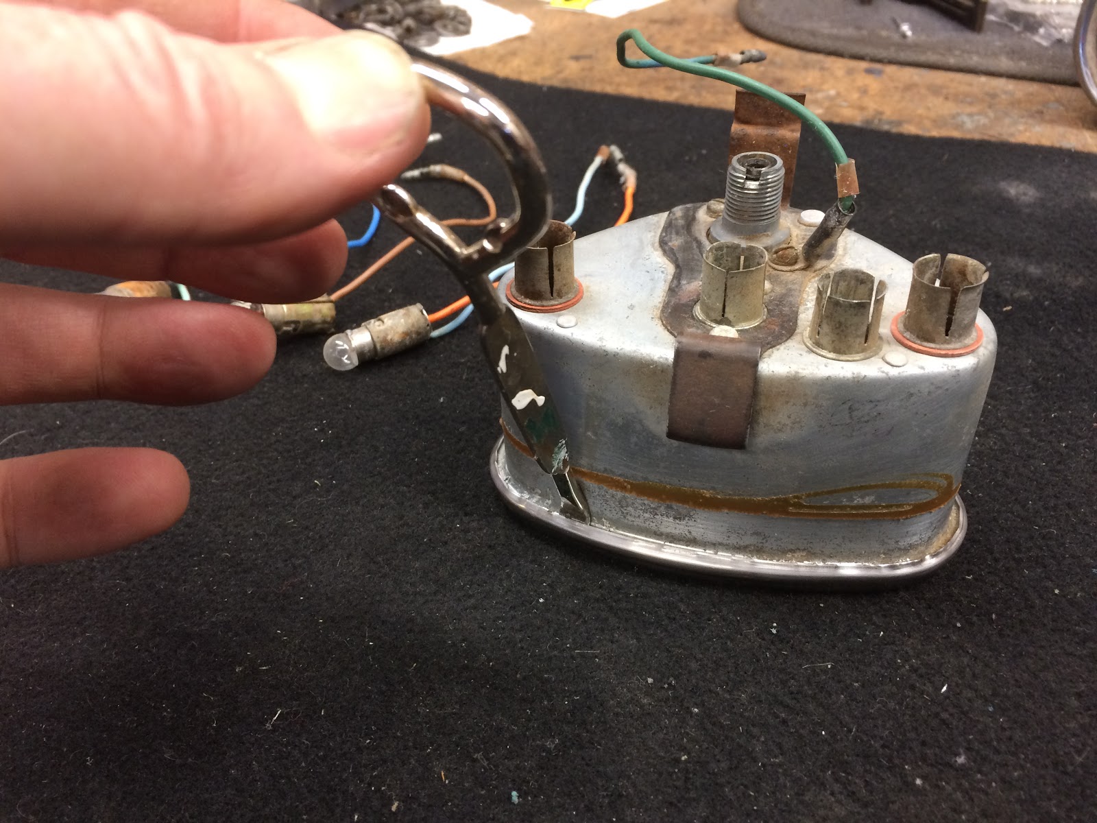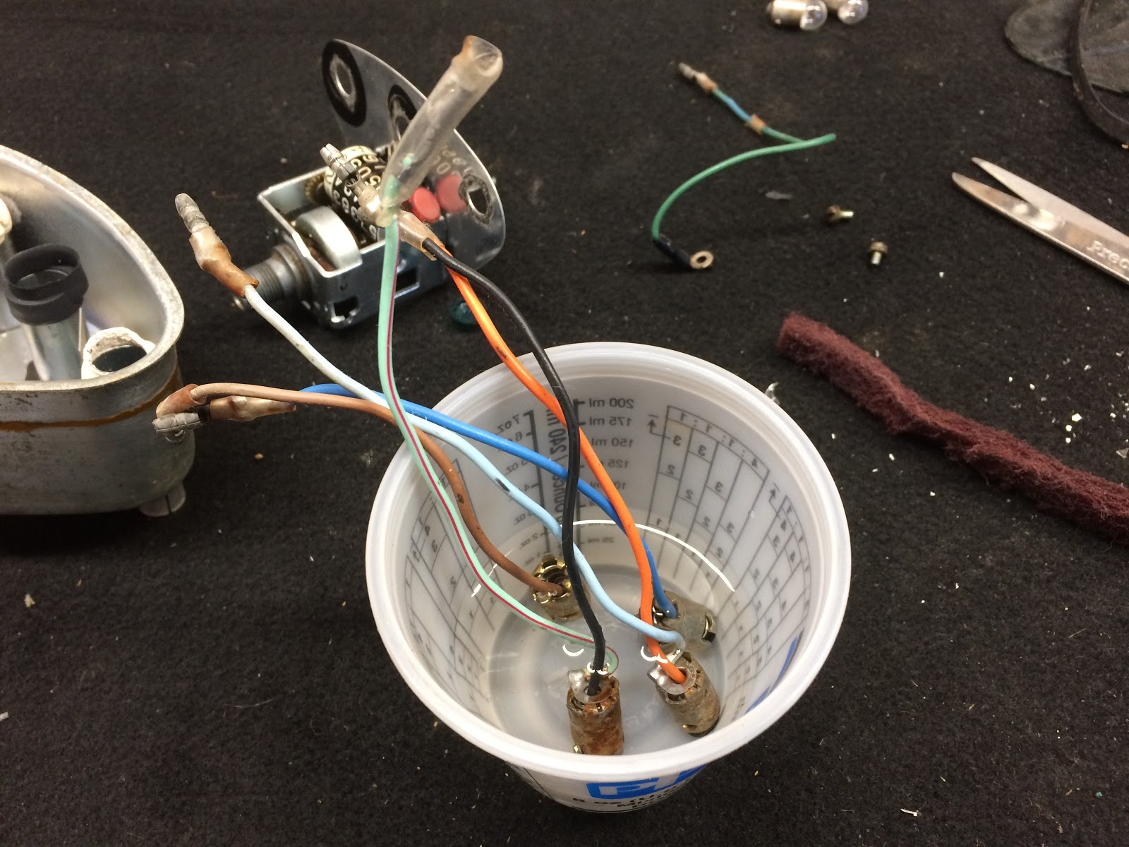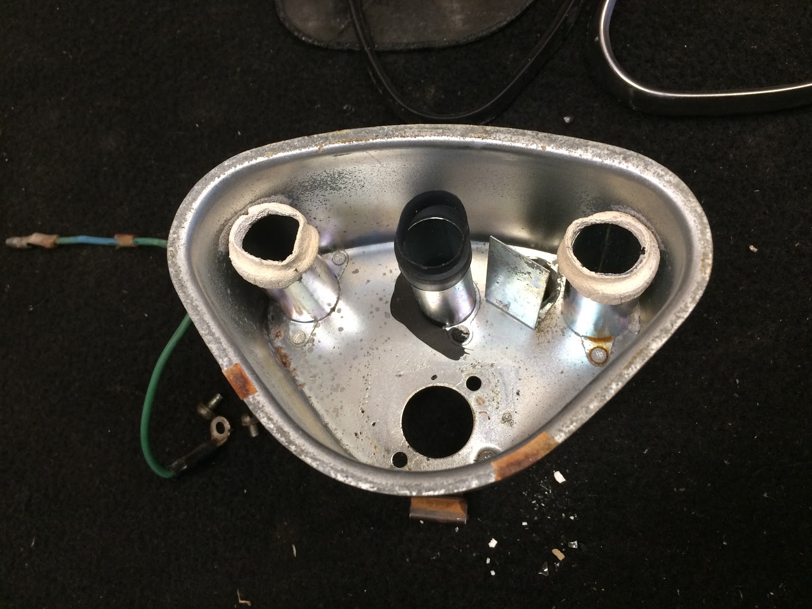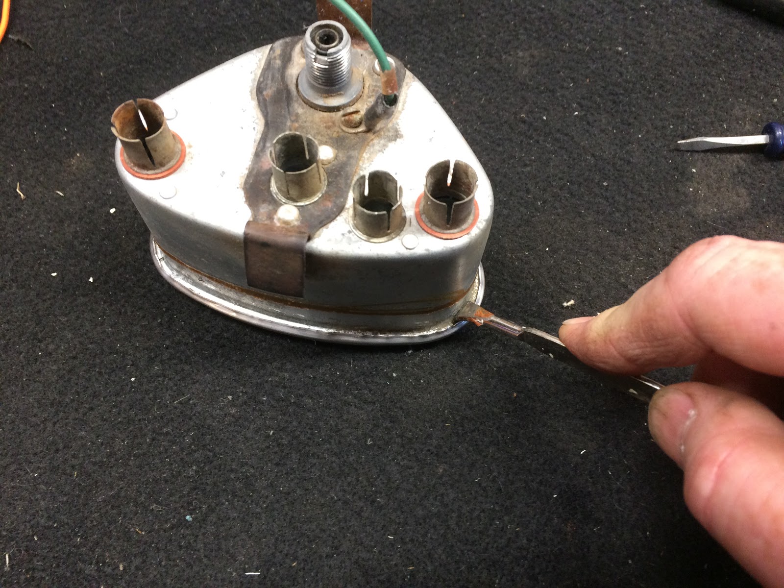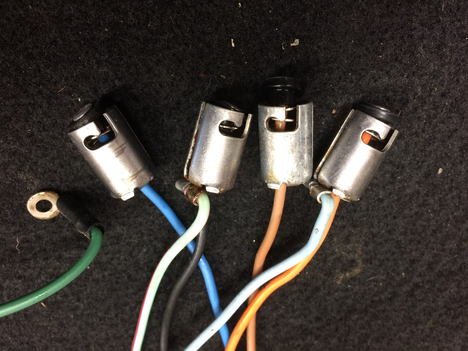 I next turned my attention to the bulb sockets which had some corrosion and soaked them in a little white vinegar to help remove the rust and they cleaned up nicely.