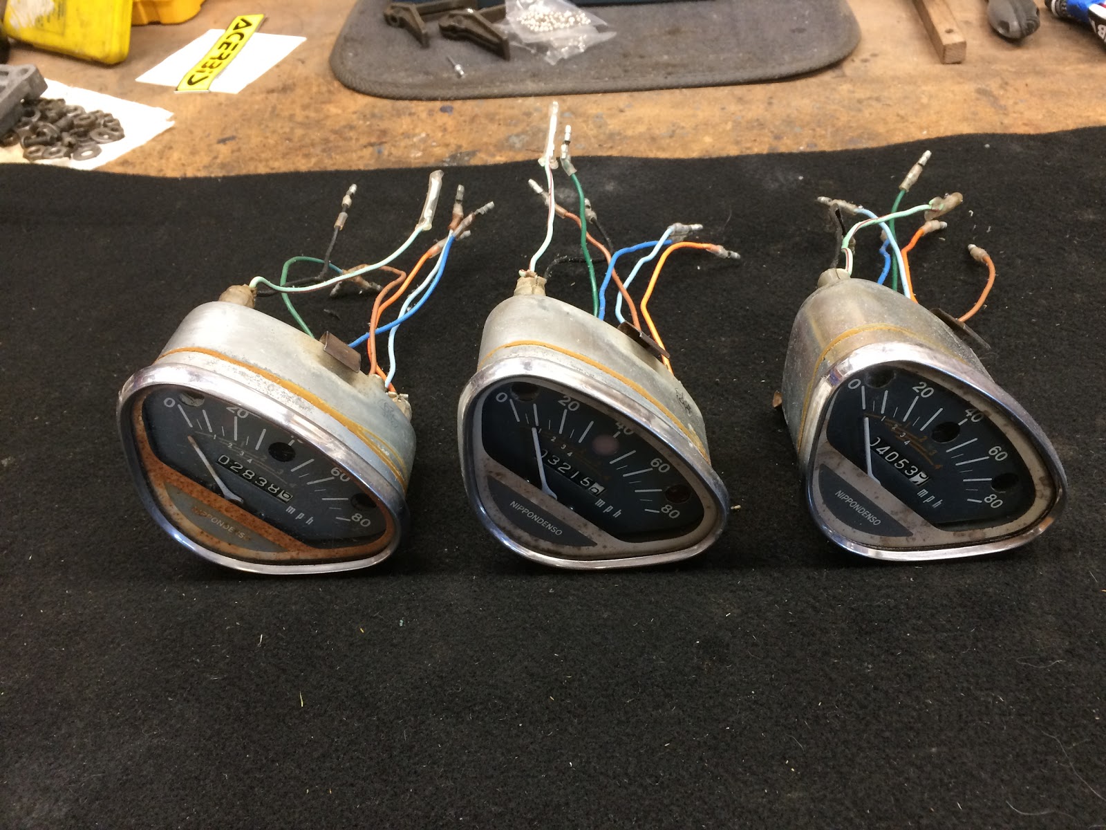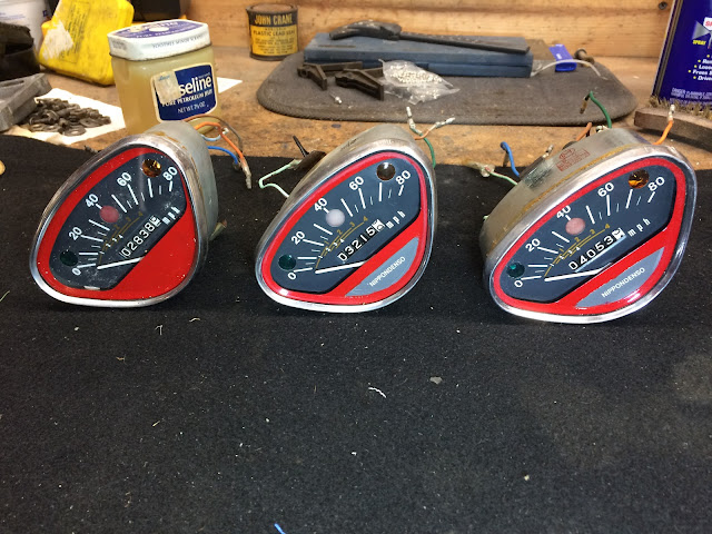 Here is a shot of the three speedo's off of my 1969 CT90's that I will be rebuilding;
