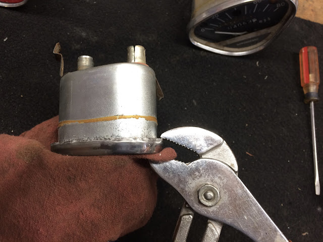 Now that I have a little experience under my belt with rebuilding a CT90 speedo, I followed the same approach outlined with the first speedo I rebuilt above except that I avoided all the mistakes I made and used channel locks padded with a rag to crimp back on the trim ring.