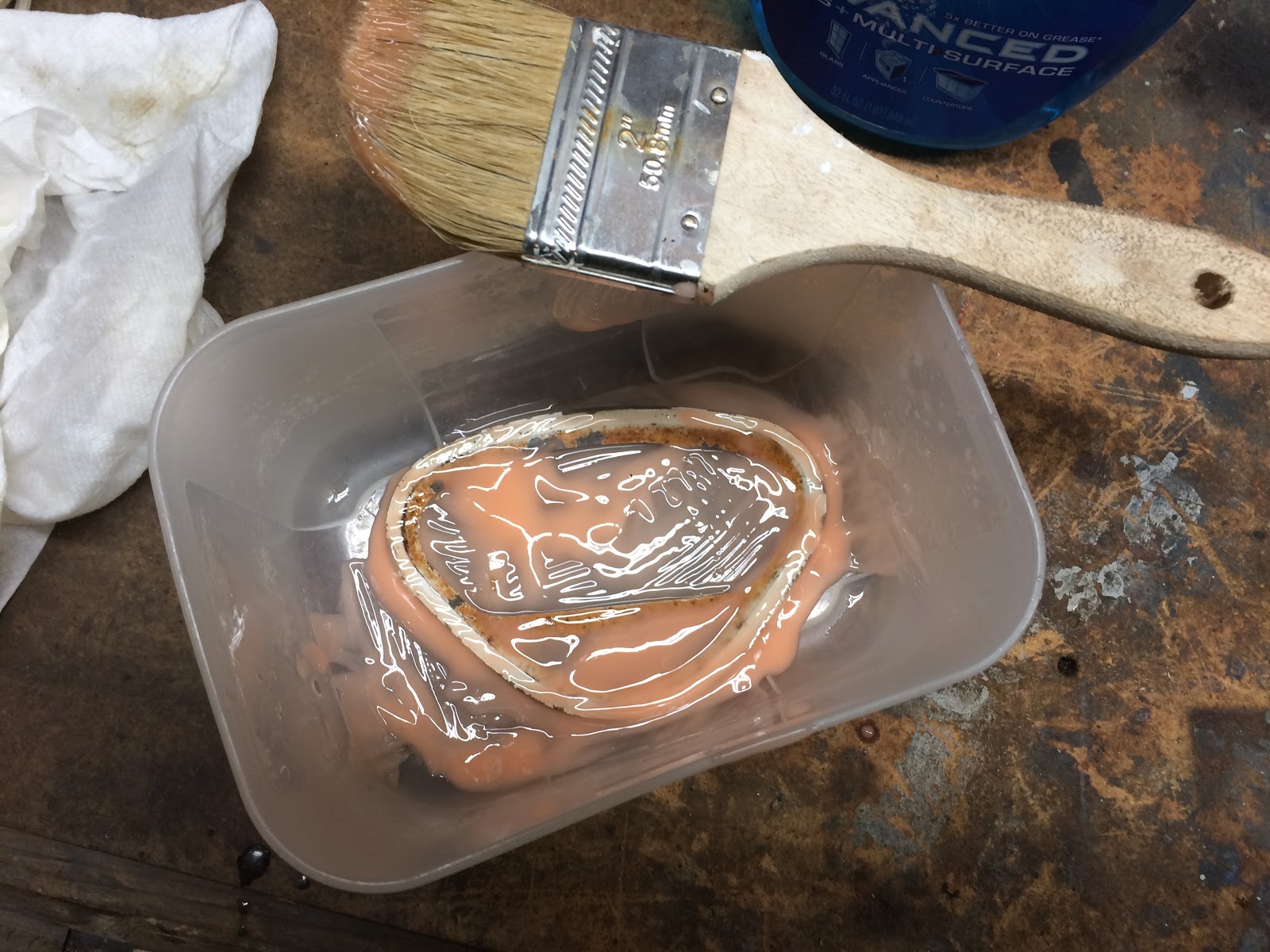I tried to clean the plate but nothing worked so I stripped the plate with paint remover and painted it a solid red to match the headlight bucket (and also because I didn't have any white paint...).