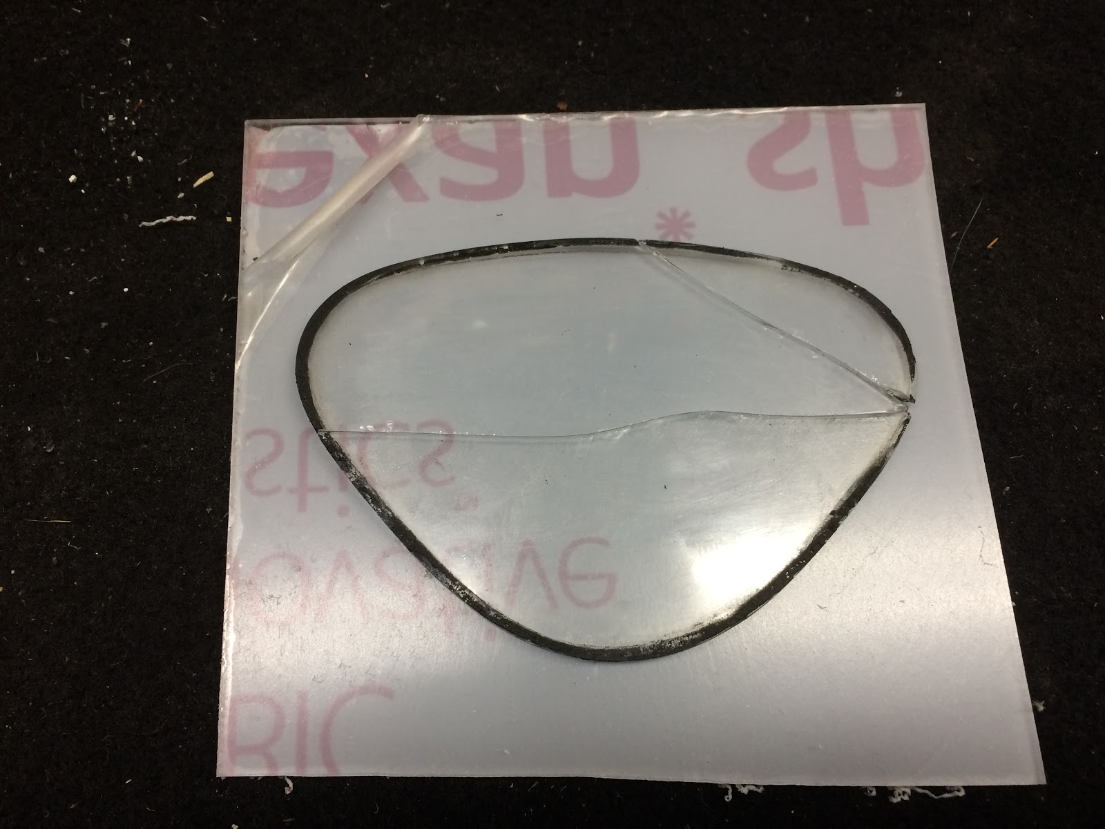I also needed to replace the broken glass and decided to use some Lexan plastic that I had in the shop to make a replacement as it was the right thickness and is pretty scratch resistant. Another option would be to go to a stained glass shop and have them cut you a new one using the old glass as a pattern.