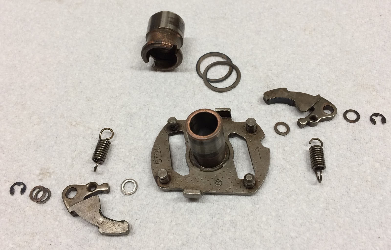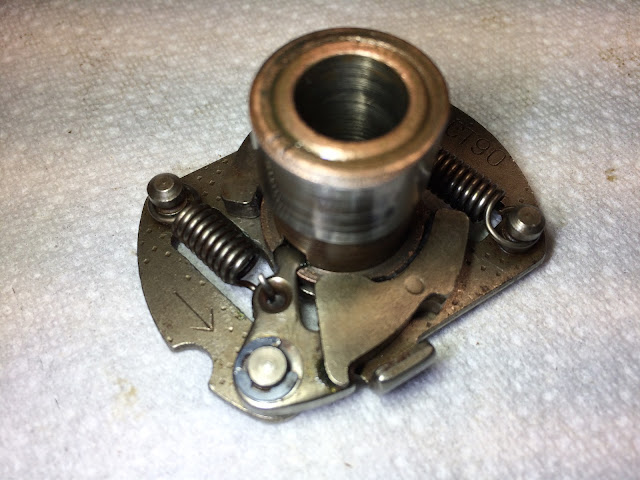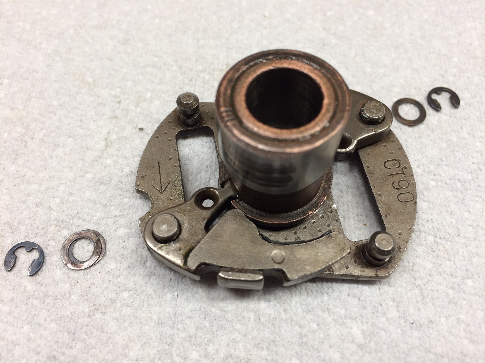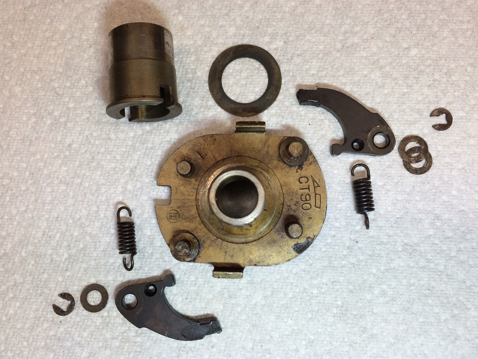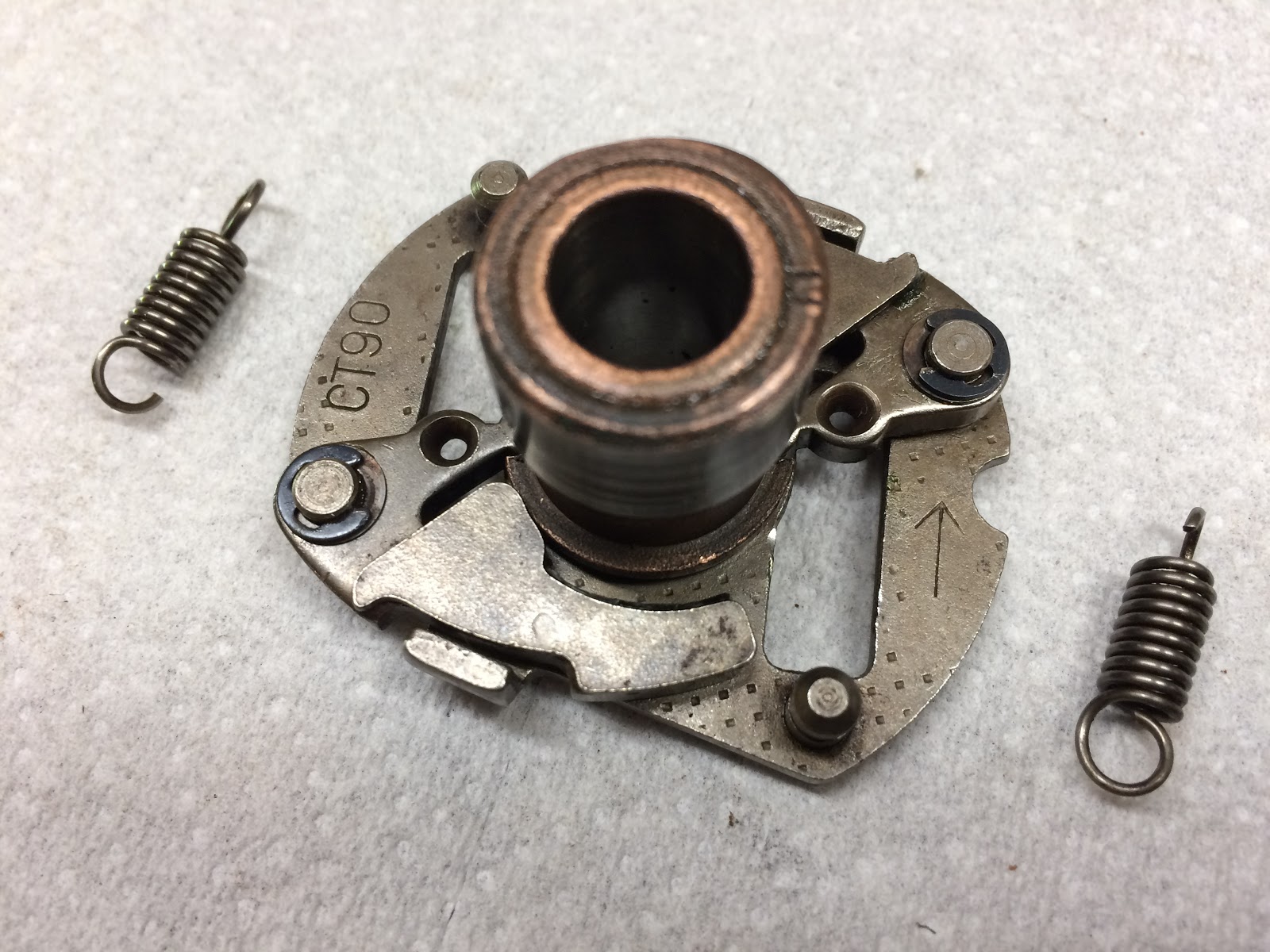 1. Excellent writeup and even with two ST90's, two CT90's, spare engines and extra spark advancers in a sack around here, I have never seen that other style of spark advancer. I definitely learned something there. I have seen that some of these advancers have notches on the back of the counterweight arms that are cut more deeply which allows for the arms to extend further (provides more advance) at high rpm before the arm contacts the stop.