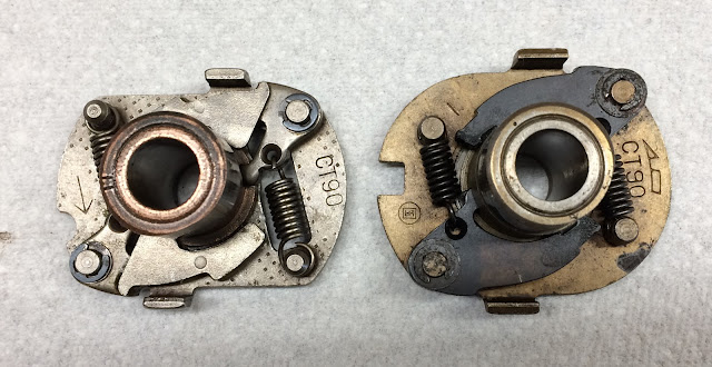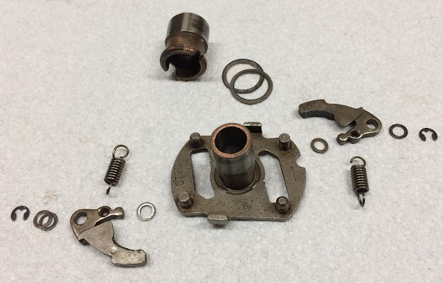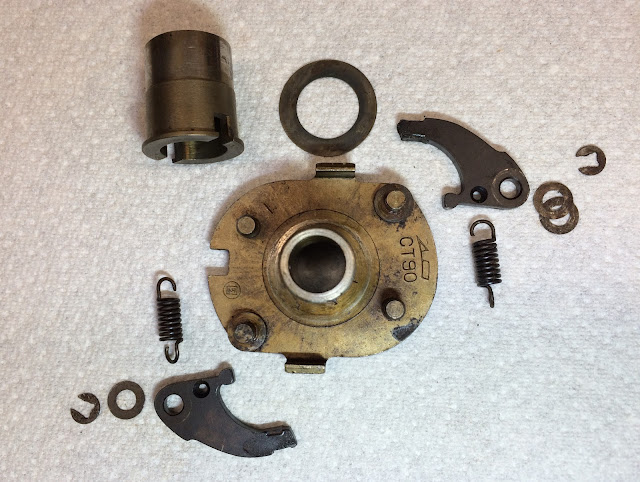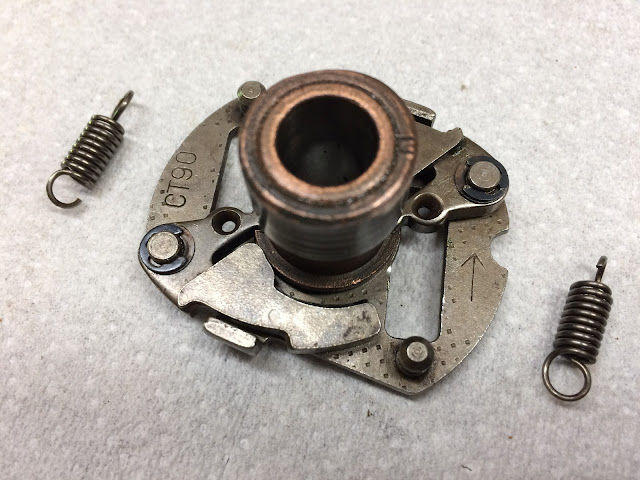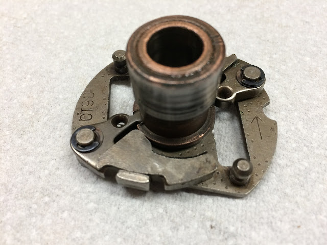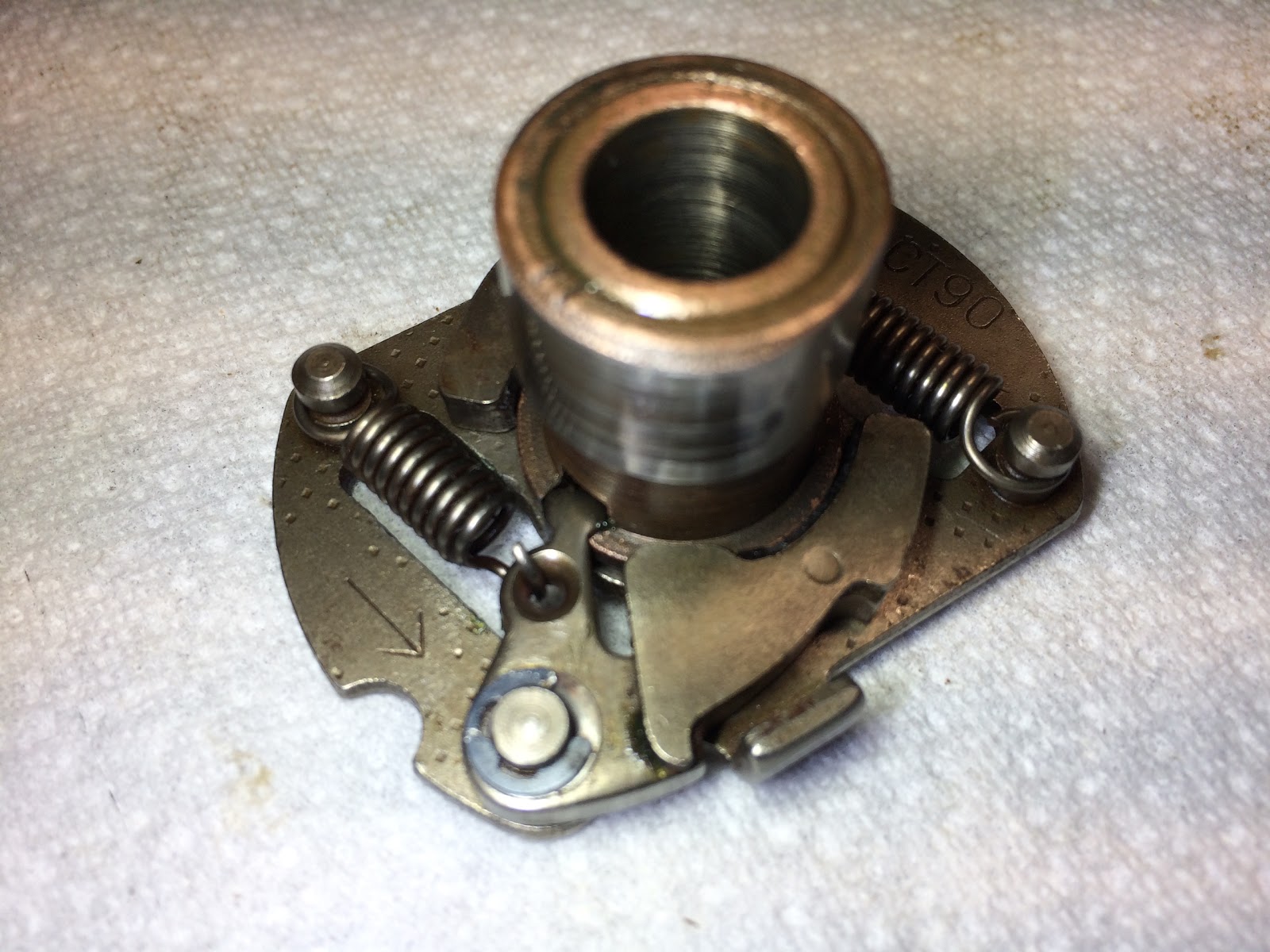 Here is a shot of a clean and assembled CT90 spark advancer.  There are a couple of different configurations used on the CT90 and I will show another configuration further along in this post, but the one below is typical for a CT90.