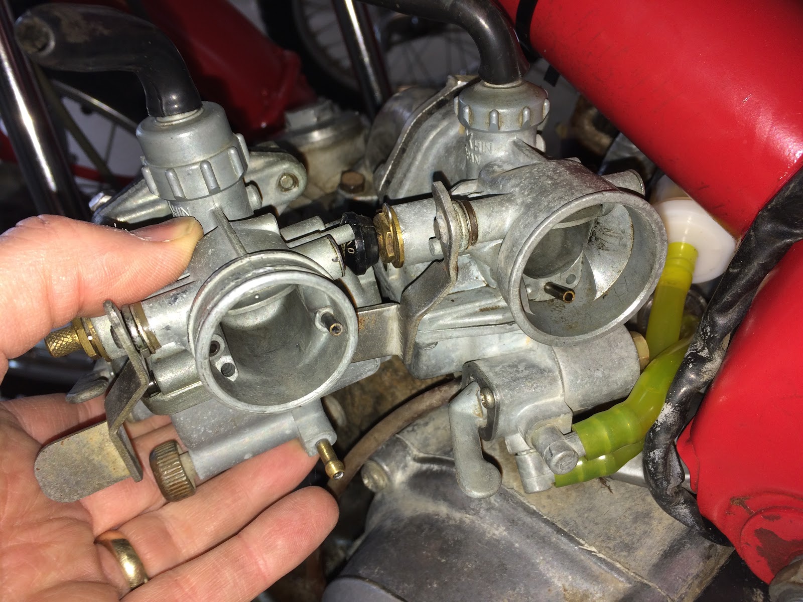 The picture below shows the carb from the K3 on the left and the carb mounted to my K1 on the right and you ac see the significant difference in the opening diameters between the two carbs. While the K1 carb has an opening of 1 1/2 inches (38 mm), the K3 carb only had an opening of 1 11/32 inches (34.13 mm).