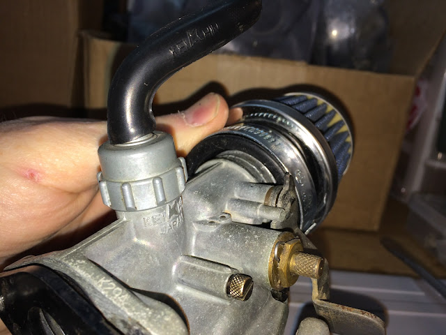 Here is a picture of the filter slipped on the K3 carb showing the gap that exists