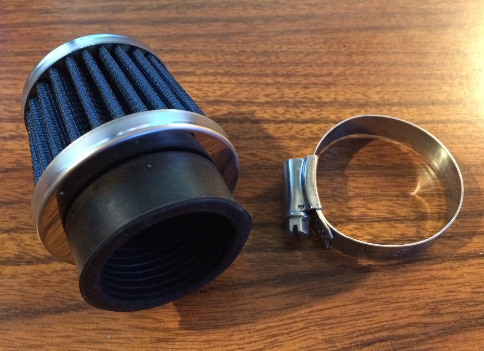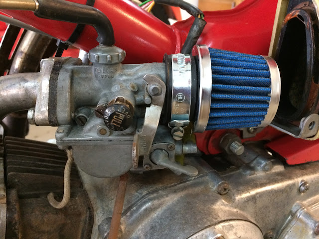 My goal with each of these K1's is to build a reliable runner to sell and not really restore them to their original condition, so I was flexible on what I could use for an air filter and I decided to go with a stubby style air filter. After a little searching on Amazon, I found this air filter by Huri that said it would fit on a CT90 and the price was right at $8.25 with free shipping using Prime. In the end I am happy I purchased this air filter for my 1969 K1 CT90, but for other CT90 models I may have a different recommendation as I explain below.