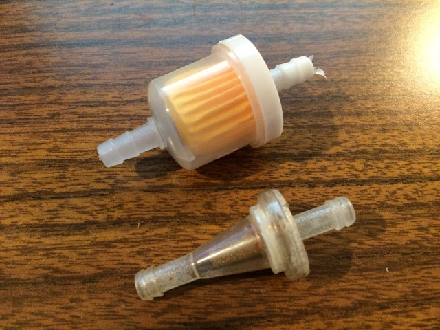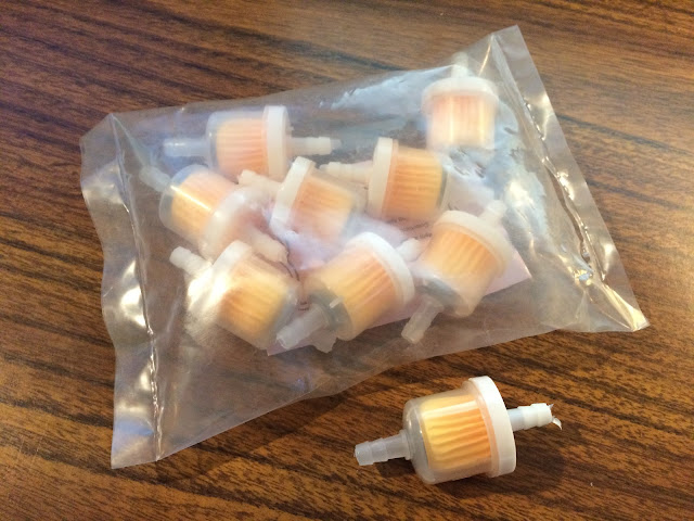 Given there is not a lot of space between where the gas lines exit the opening in the frame and the carburetor, I went looking for a nice small in-line filter.