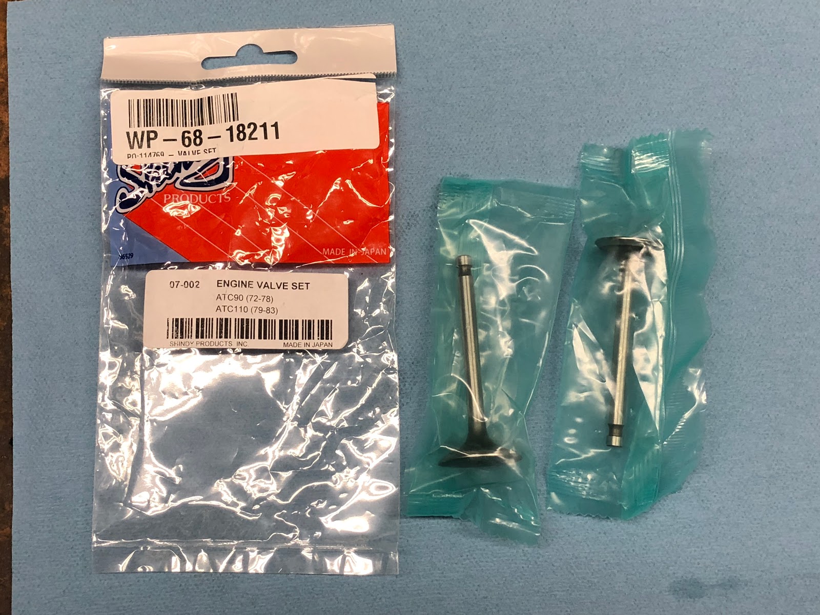 I spent some time on eBay and kept seeing sets of valves made by Shindy with a part number of #07-002. The funny thing was when the ad on eBay was for a CT90 the price was around $19.00, but I noticed the same set of valves being sold for Honda ATC's with no mention of CT90 and the price was only $13.55 with free shipping from within the USA which I thought was a great deal.