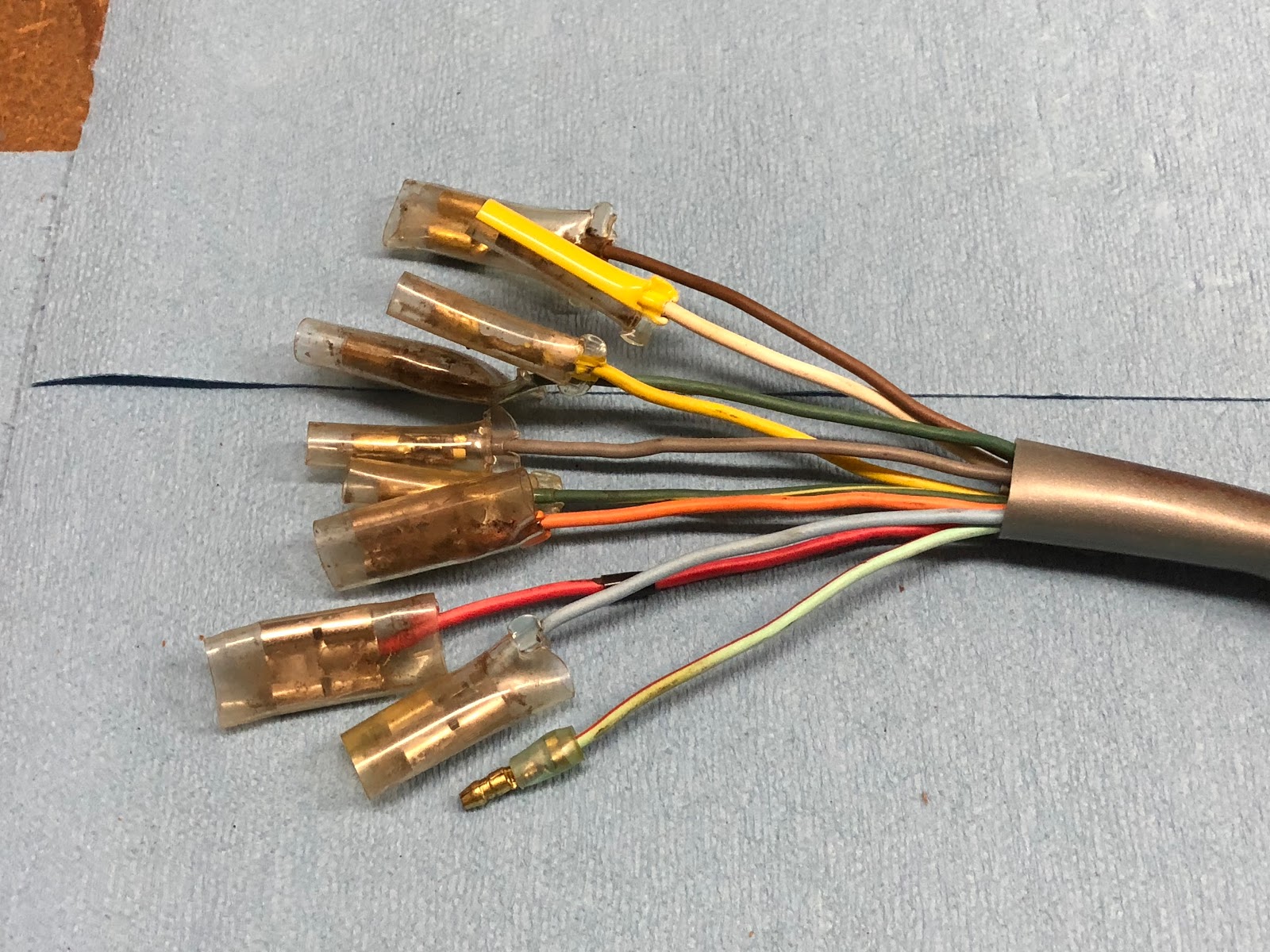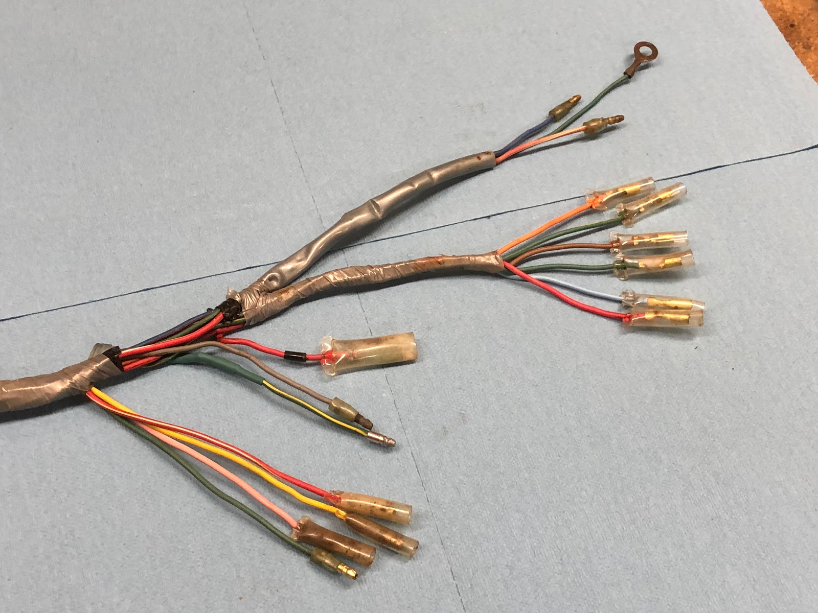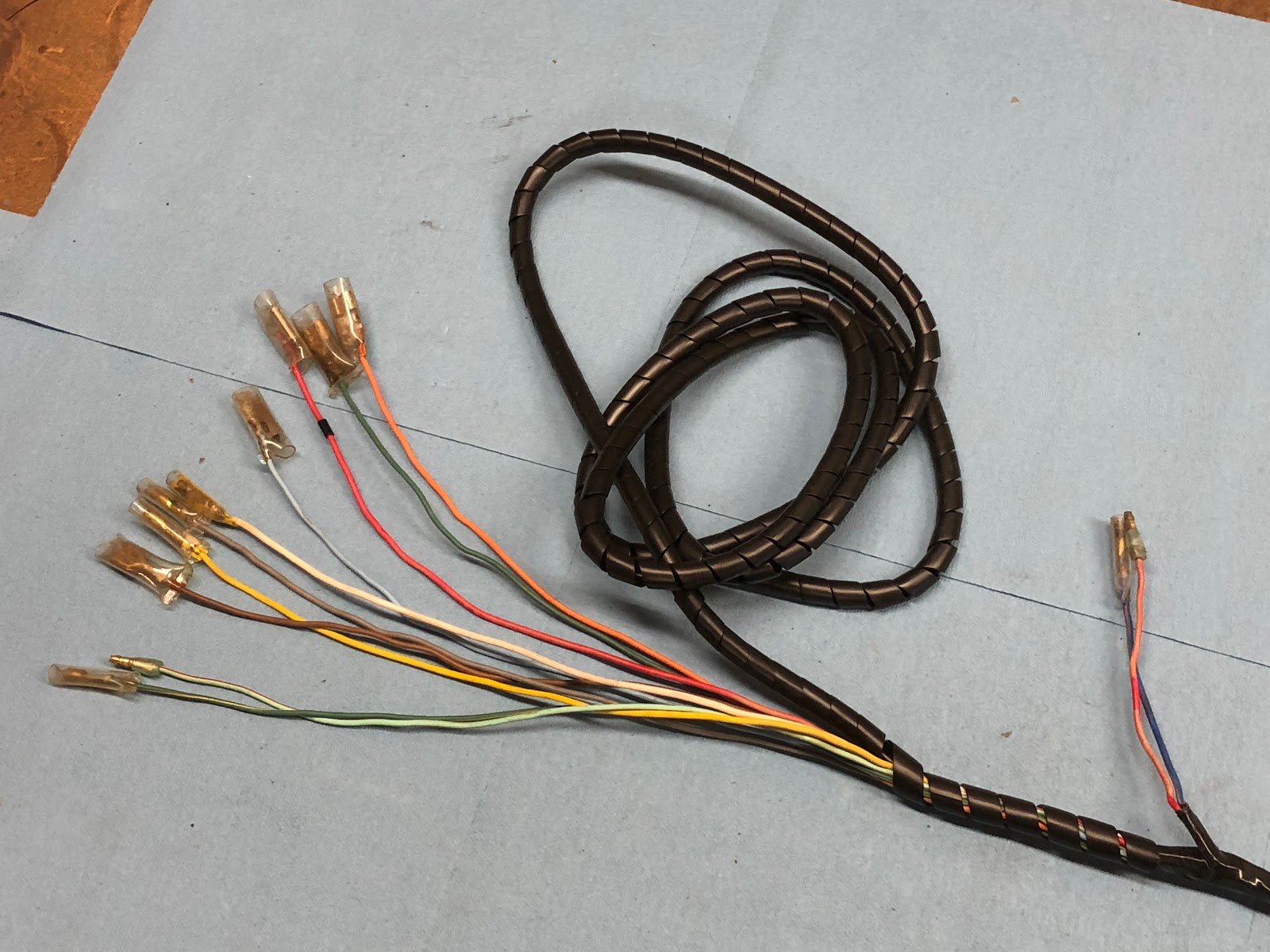 When you take all the tape and sleeving off the wire harness and separate the wires this is what you end up with.