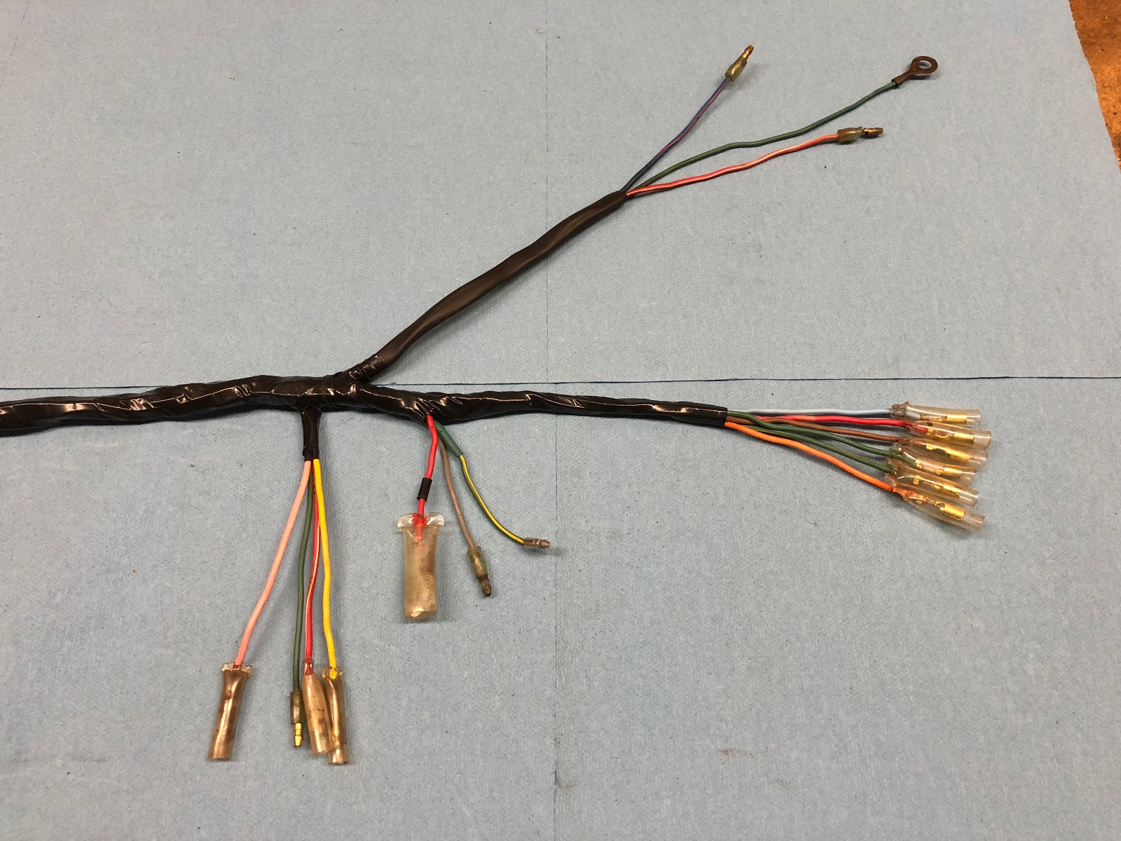 Since I had work to do on my 1971 CT90 wire harness I thought I would provide some detailed information related to the dimensions of the bundle itself and then also the individual wires that make up the harness.