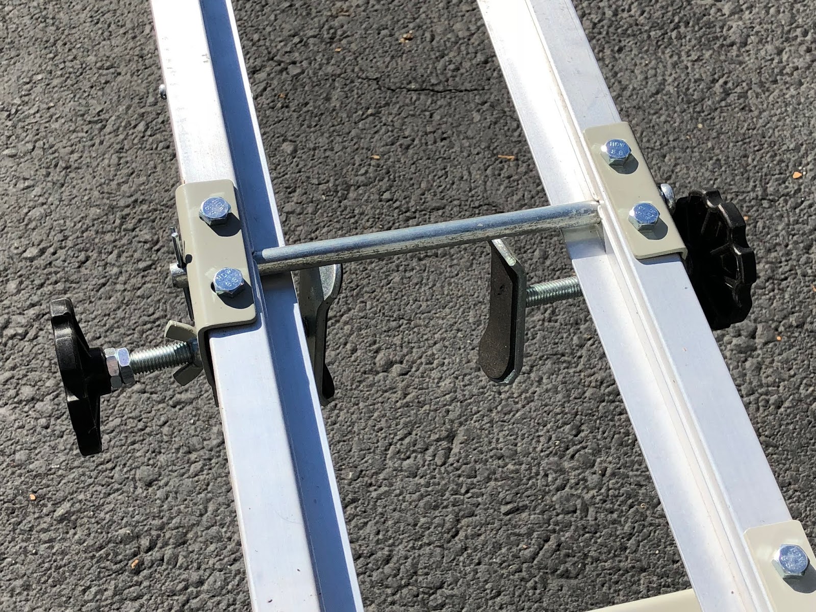 The picture above also shows how the ramp is retained in its stowed position by a spring loaded plate secured by a wing nut and also the large knob on the end that clamps the ramp up against the main structure of the carrier. The systems seems to work well as I have not had the ramp come loose while using the carrier.