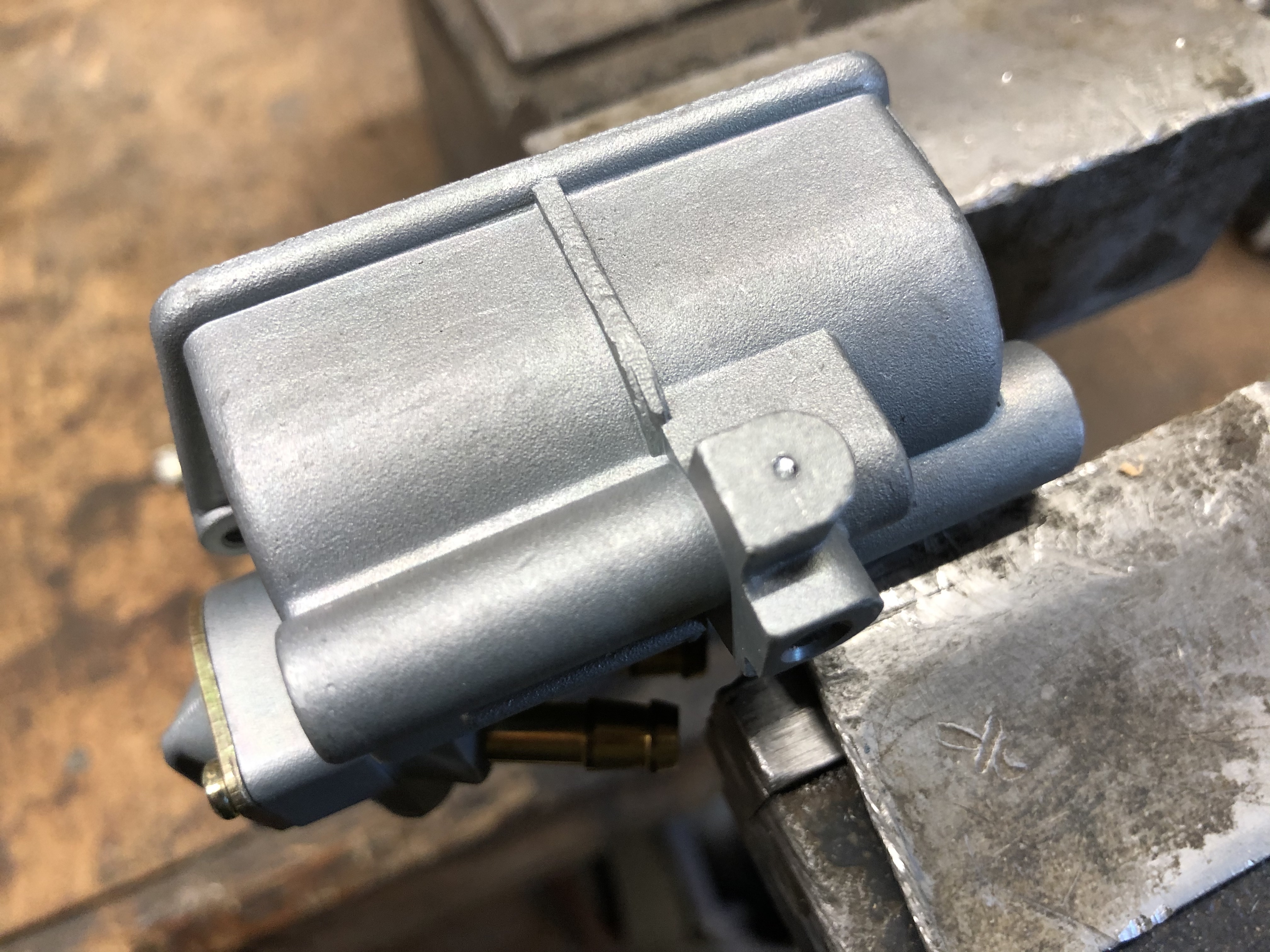 The only real issue with the new carb was that the drain was pointed down instead of to the rear like a stock CT90 carb, so I decided to modify the carb to relocate the drain to the correct location.