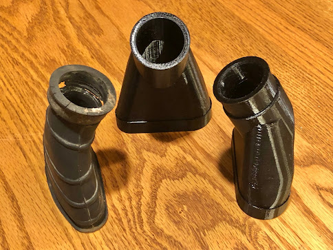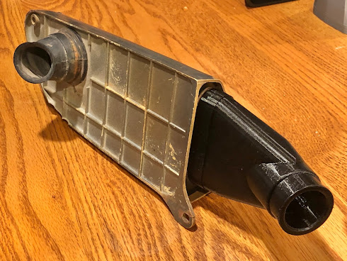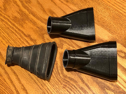 One of my first projects was to design and print the a replacement for the rubber boot that goes between the carb and air filter on the 1969 CT90 K1. I've owned sever K1's and I think I had only one where the boot hadn't fully degraded and wasn't falling apart like the one in the picture below.
